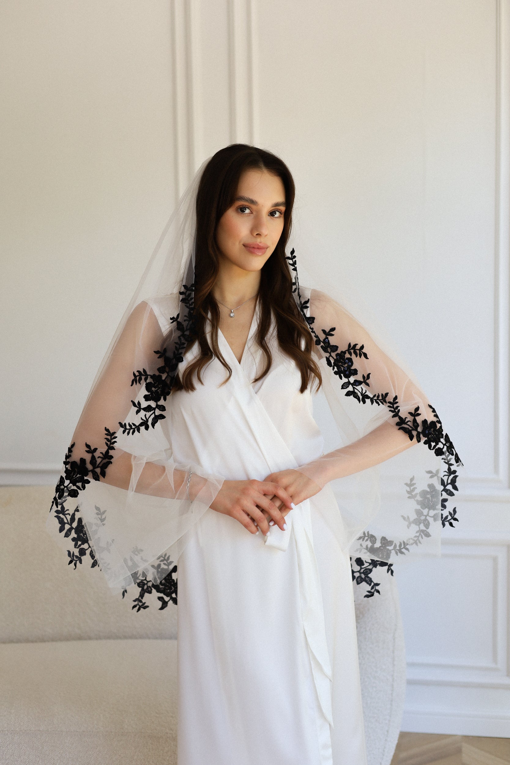 βΌοΈ Please note: Depending on the length of the veil, the placement and scale of the lace design may vary slightly to best complement the proportions of each size. This is part of our couture process and ensures the veil looks balanced and beautiful in every version! βΌοΈ